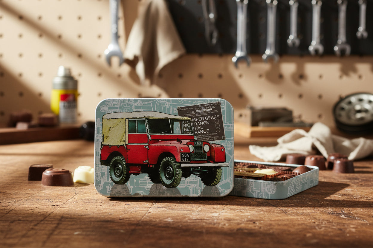 Presented in your choice of Mini Cooper or Land Rover collectible tins, these vintage-inspired designs are favourites for dads, brothers, car lovers, and collectors alike. Each tin is reusable, making a charming keepsake long after the chocolates are gone.