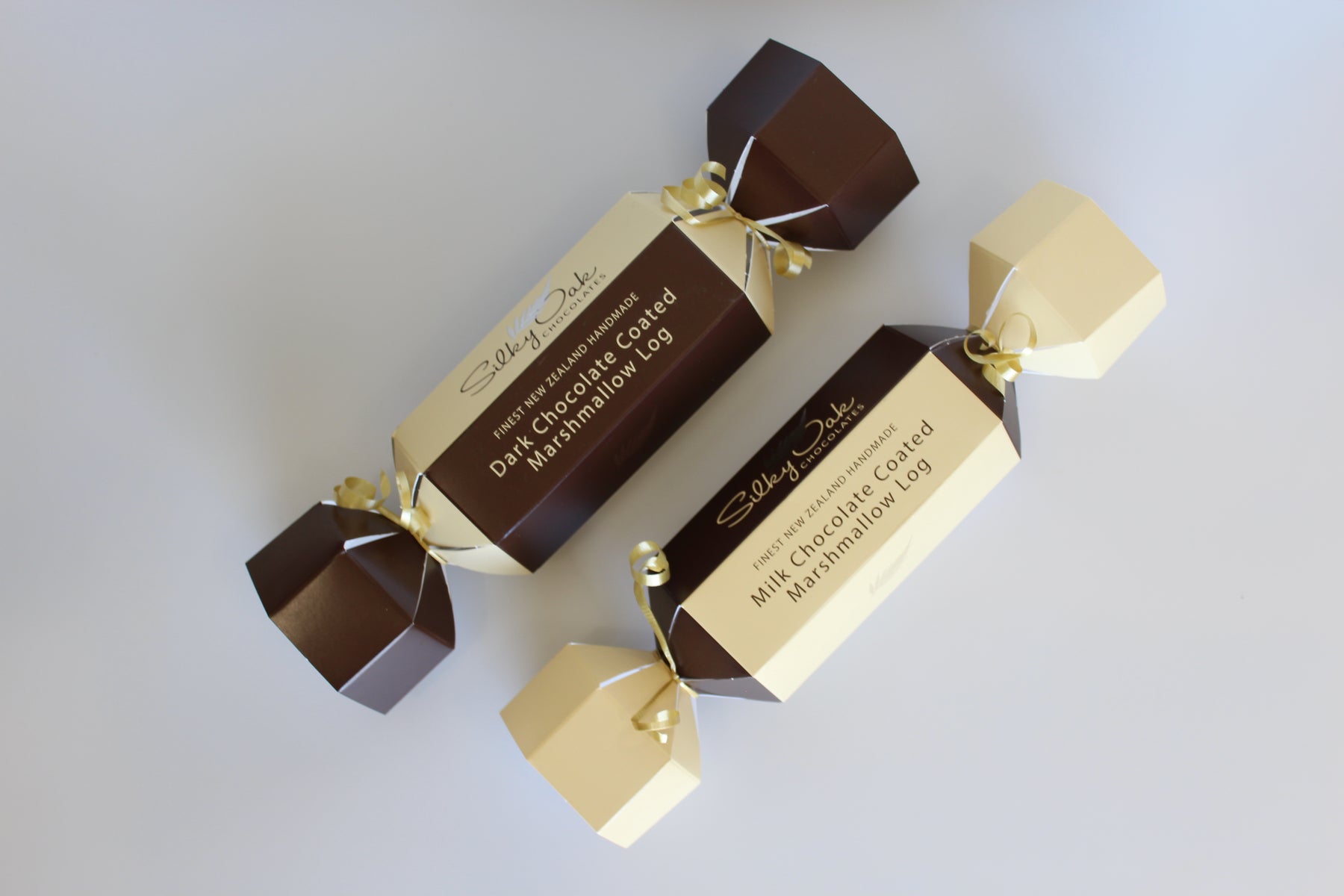 A festive favourite and one of our most popular treats- our Milk or Dark Chocolate Coated Marshmallow Log is the perfect mix of fun and indulgence. Each soft, fluffy marshmallow centre is hand-coated in smooth Silky Oak milk or dark chocolate, then wrapped in our signature Christmas cracker packaging.